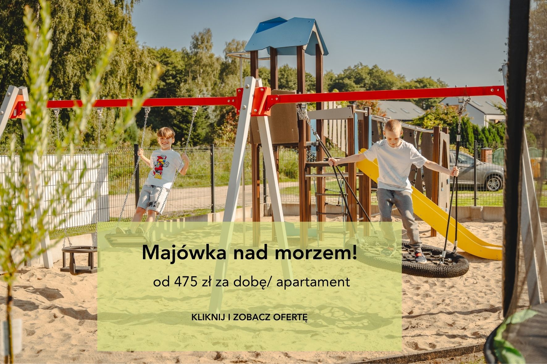 Tak. Nasze apartamenty są przygotowane z myślą o rodzinach. Na terenie obiektu znajduje się plac zabaw oraz przestrzeń do wspólnego wypoczynku.